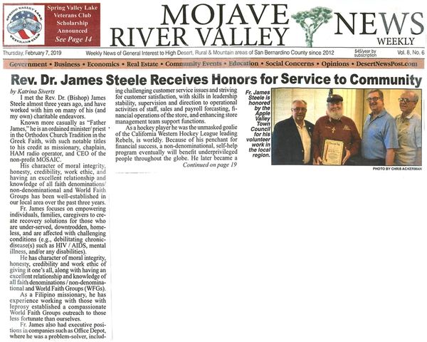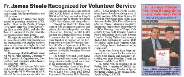 The Senior News and Desert News Post has published several articles to bring attention to the good work done in our communities by Fr. James.