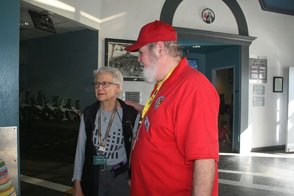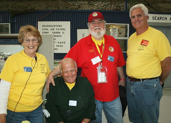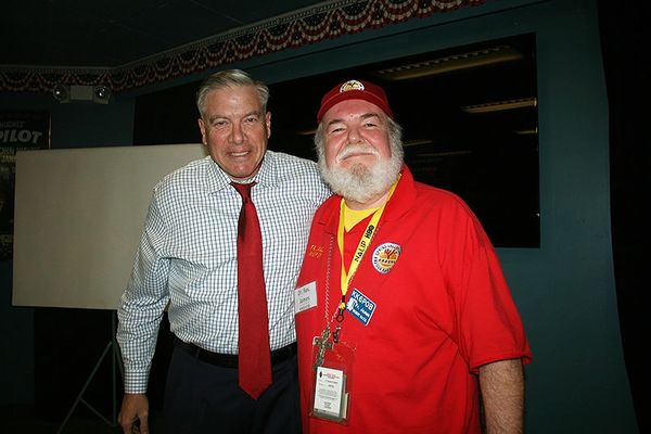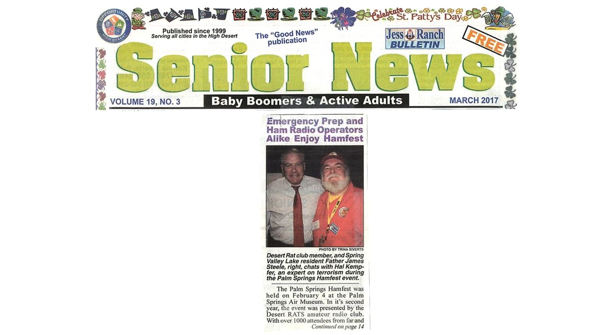 PHOTO: Desert Rat Lifetime Club Member, and Spring Valley Lake resident Father James Steele, right, chats with Hal Kempfer, an expert on Terrorism during the Palm Springs Hamfest event.