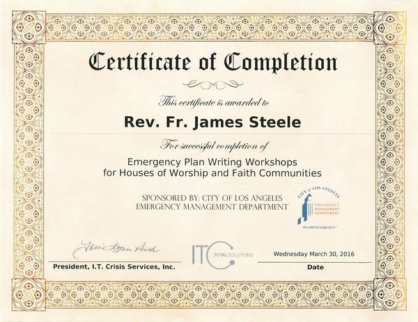 A special invitation was given to MOSAIC / Fr. James to attend both Terrorism Recognition for Early Warning (TREW) & Terrorism Recognition, Awareness, & Prevention Partnership (TRAPP) Training Presentations by Instructor Marine Col. Hal Kempfer, Terrorism Expert. Hal is CEO and Founder Knowledge & Intelligence Program Professionals (KIPP) and advices the U.S. Department Of Homeland Security on immediate Terrorist Threats and Strategies to combat such threats, as well as a featured expert on KABC-7 TV News and 89.3 FM National Public Radio on military affairs, intelligence & terrorism www.KIPP-Intelligence.com.