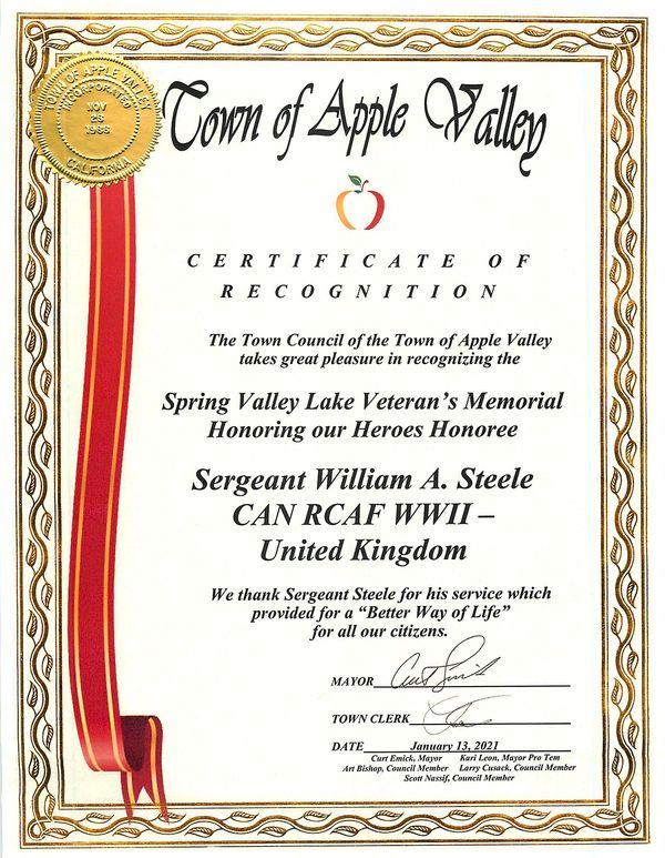 The balance of the certificates were presented by Apple Valley Town Councilman Art Bishop, who did a great job of getting them to talk about their service, and what it meant to each.